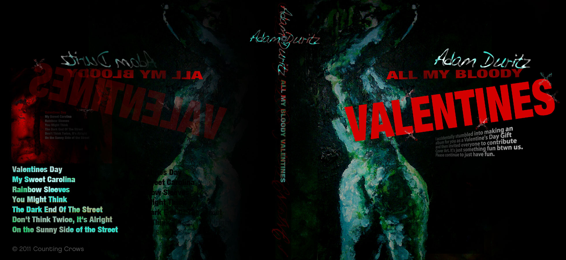 COUNTING CROWS — Adam Duritz —“All My Bloody Valentines” cover art contest. Posted on February 20, 2011 by jefferyjohns Album design competition entries for Counting Crows. Album Title: All My Bloody Valentines, Adam Duritz Share this: Click to share on Pinterest (Opens in new window) Pinterest Click to share on Facebook (Opens in new window) Facebook Click to share on X (Opens in new window) X Click to email a link to a friend (Opens in new window) Email Click to share on LinkedIn (Opens in new window) LinkedIn Click to share on Tumblr (Opens in new window) Tumblr Click to share on Reddit (Opens in new window) Reddit Like Loading... Related