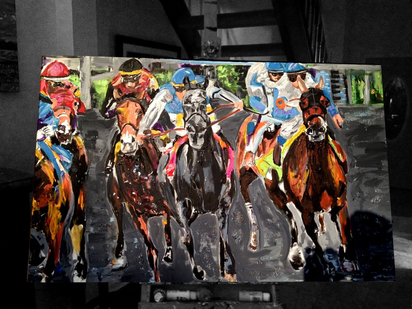 DownTheStretch Published September 13, 2012 at 1584 × 1188 in Down the Stretch™ ~ 30″ x 48″ Acrylic on Canvas