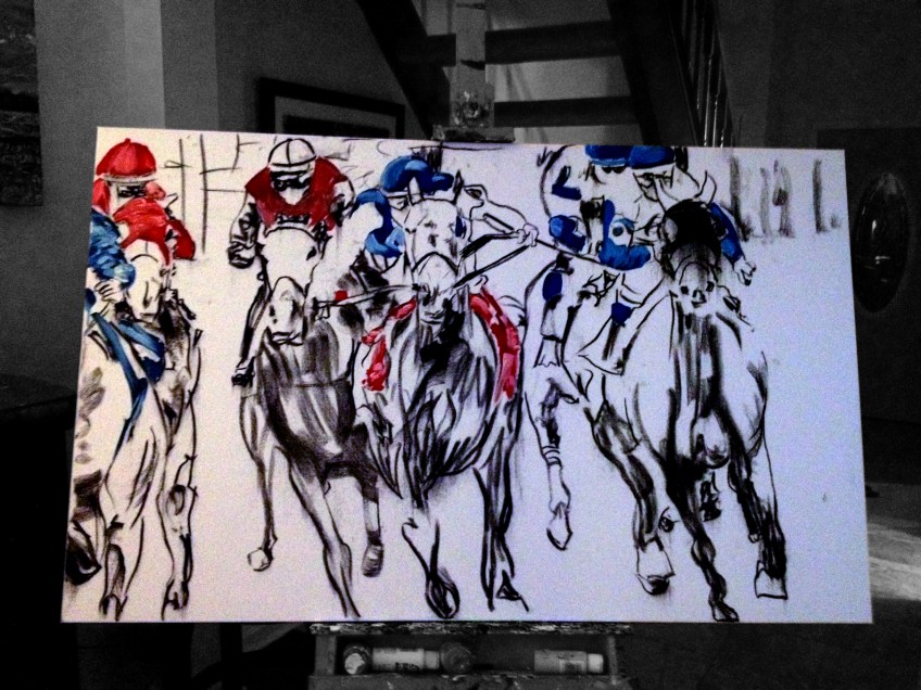 HorseRacePhase_1 Published September 7, 2012 at 1584 × 1188 in Down the Stretch™ ~ 30″ x 48″ Acrylic on Canvas