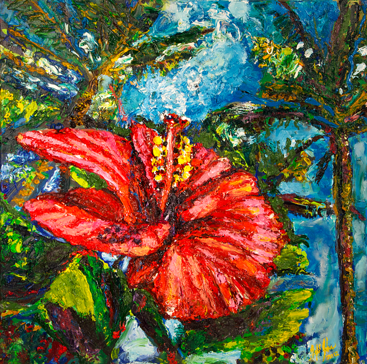 Lele Koki‘o ‘ula ‘ula Published December 17, 2012 at 1216 × 1207 in Jeff Johns Unveils “Indigenous,” Featuring Kauai’s Native Hibiscus 24″ x 24″ Oil on Canvas by Jeff Johns
