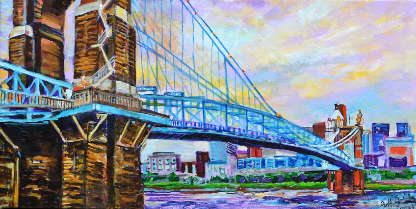 beautiful_robelingday_cincy_small Published August 21, 2021 at 1583 × 796 in beautiful_robelingday_cincy_small Gorgeous Roebling Day, Cincinnati | 16″ x 30″ acrylic on canvas
