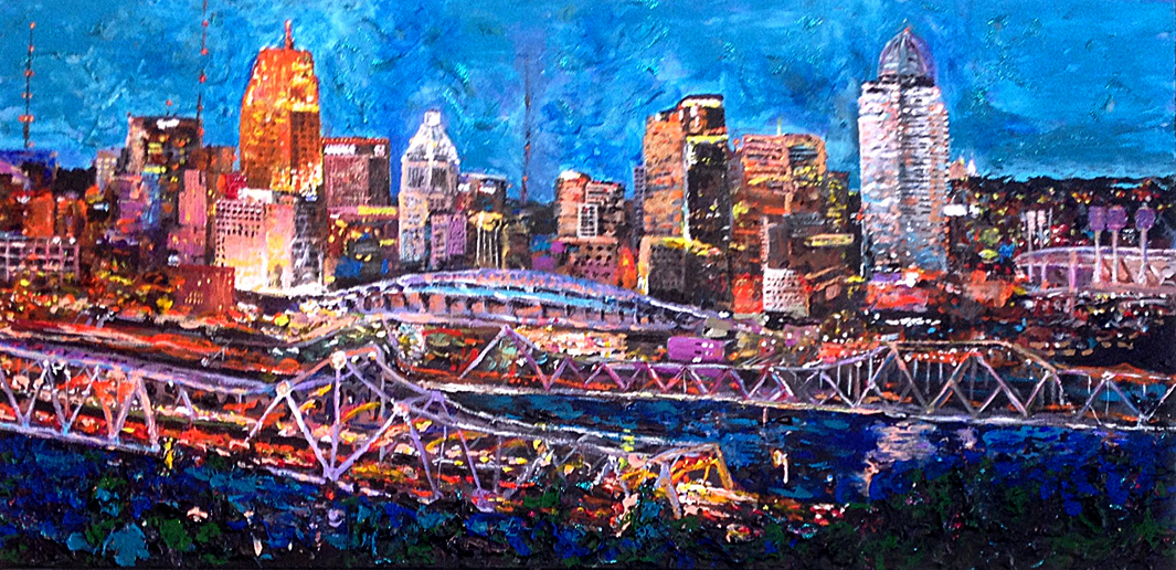 bluffsview Published October 30, 2014 at 1065 × 516 in Cityscapes BluffsView of the Cincinnati Skyline | 24″ x 48″ acrylic on canvas – SOLD Like Loading...