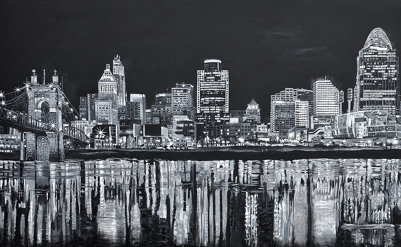 CincyinJuly_BW_LR 2 Published September 5, 2017 at 1296 × 798 in Cityscapes Cincy in July | 40″ x 65″ acrylic on canvas ~ SOLD Like Loading...