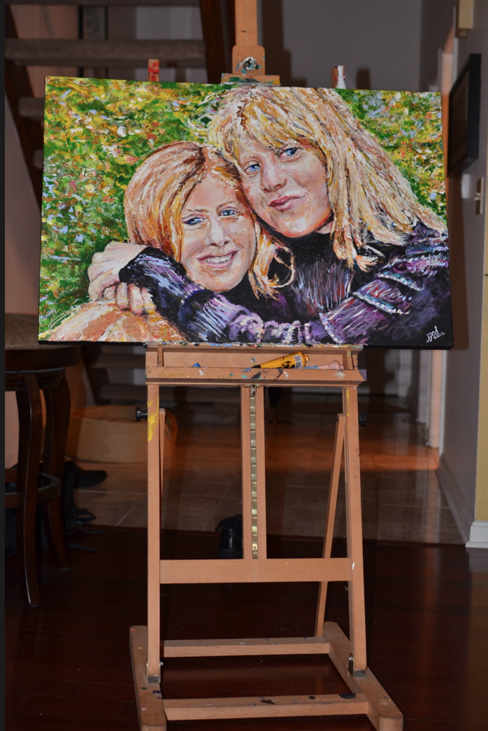 Months after the painting request, over 3 months to be exact, Jeff Johns ran into the “painting requester” at the Pendleton Art Center, where this client was taking a date because, we’ll to be honest it’s a pretty cool place to take a date, especially if you know the artist, and say “I’m having this guy paint my daughters.”  The client was friendly and his date was as well, he provided direction based on one of the daughters chins, and the others eye, but the direction was not clear since the painting was back at the home studio, and he never made the effort to provide feedback in person with the painting present. We then worked it again one more time and tried to get it just right, but still no luck. The painting has now been finished for months now, and we truly love it, however nothing will get me over the fact that it has been abandoned. This story and painting will live on. The moral of the story is, to paint with passion, paint for friends, however be a better judge of your friends, and don’t forget to take 50 – 75% of the painting price upfront before you even continue the conversation about starting a painting. I’d say we’ve learned our lesson.