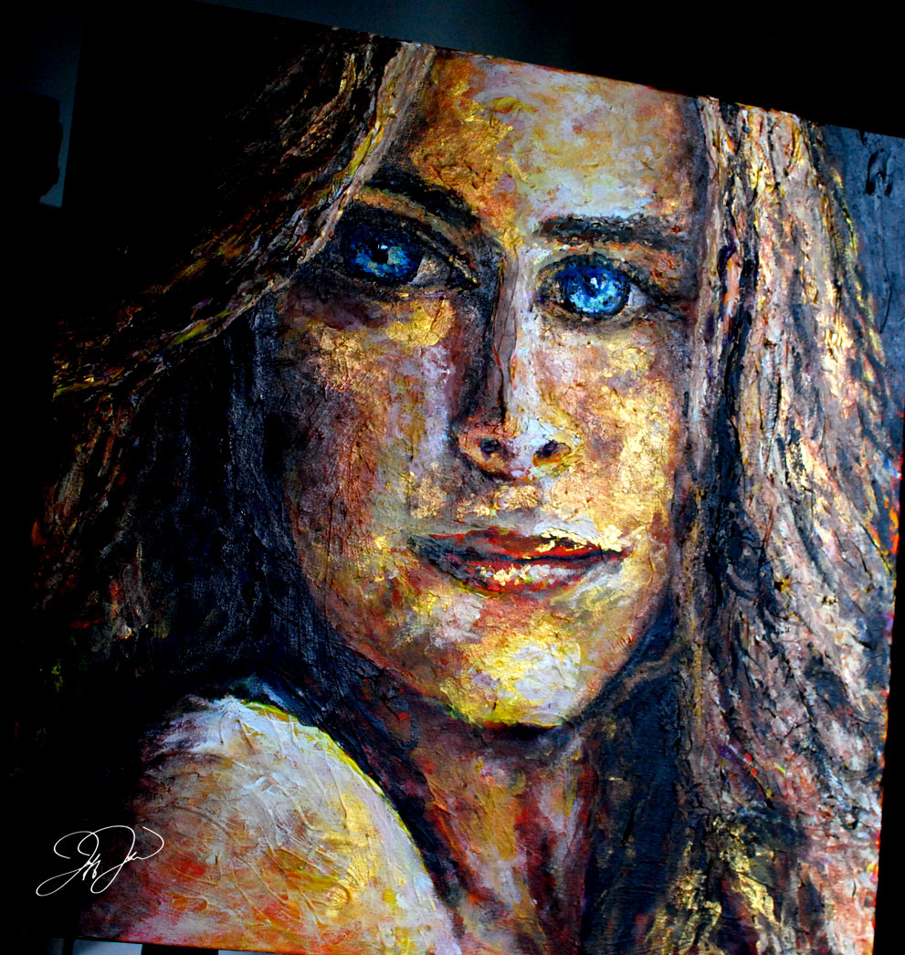 Here’s a capture of my painting titled, Face of a Lady | 36″ x 48″ acrylic on canvas hanging in the owners home. It’s always great to see one of your paintings living in its environment. Enjoy, JJ