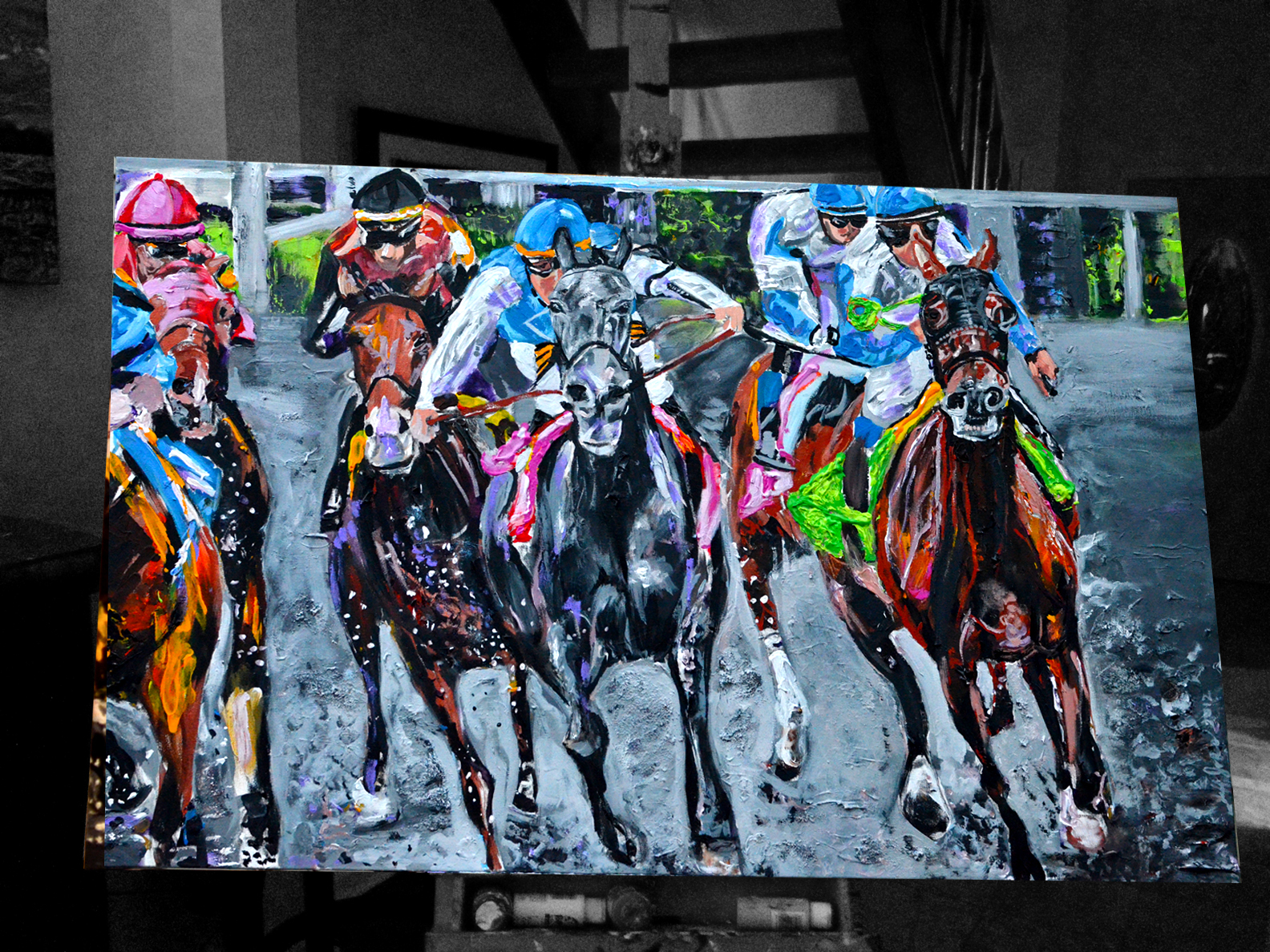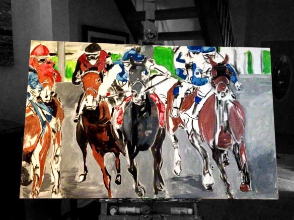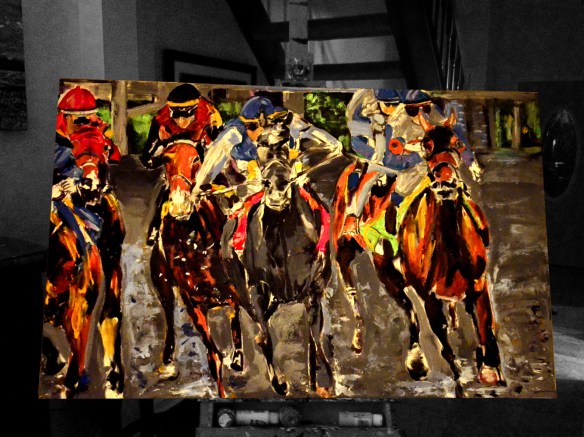 Here’s another painting to add to my equestrian inspired series titled, Beautiful Blonde in Union, Kentucky | 24″ x 20″ acrylic on canvas by Jeff Johns