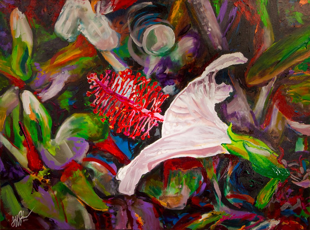 This was a 30″ x 40″ Acrylic on Canvas. The gallery wants another hibiscus painting now. I’m pretty stoked!!