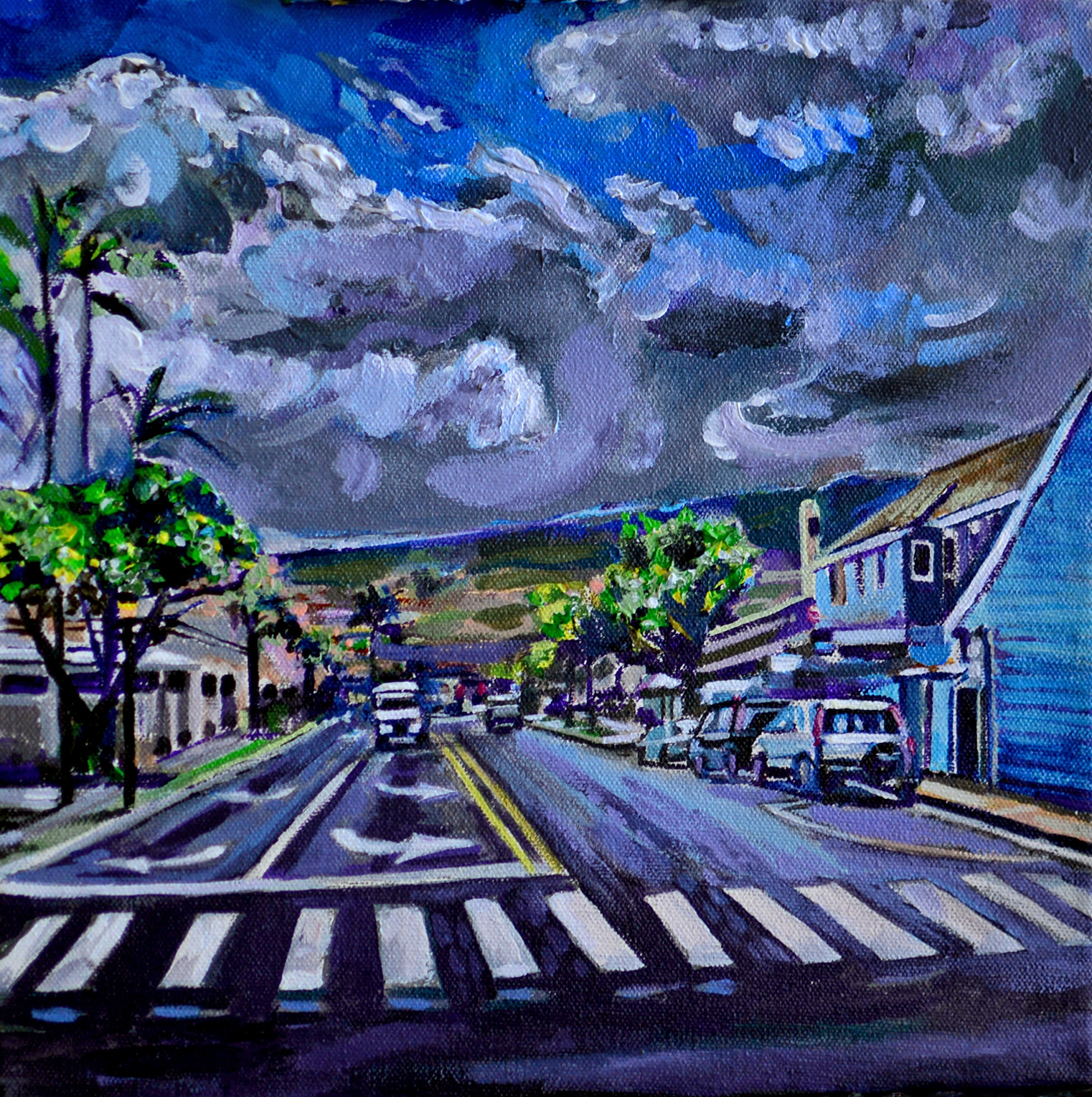 Holy Hyacinth it’s the Roebling Bridge | 24” x 36” mixed-media on canvas by Jeff Johns.